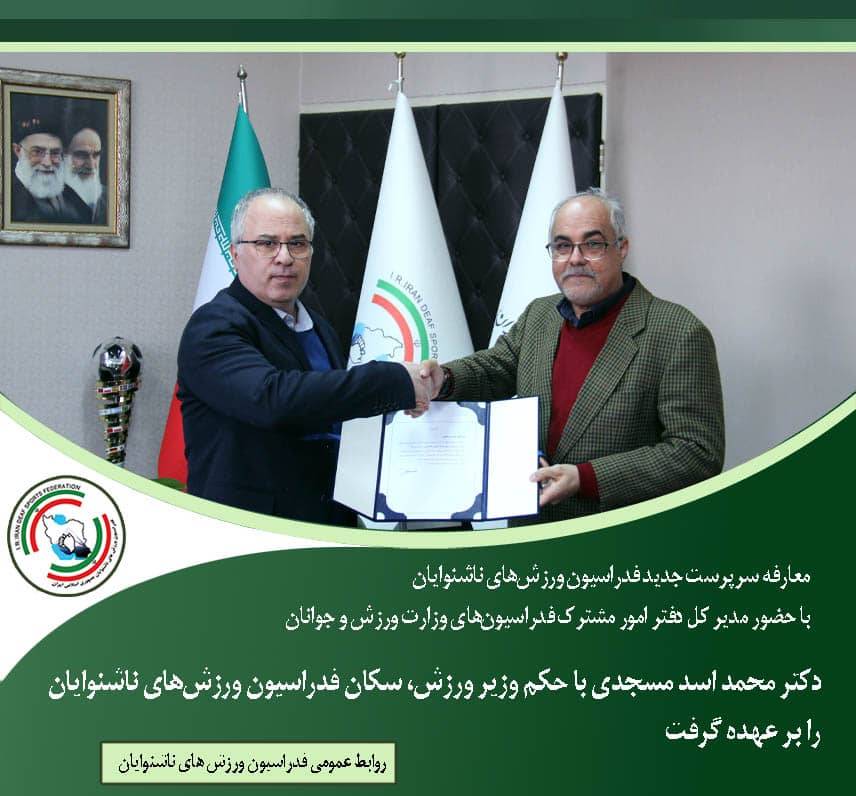 معارفه سرپرست فدراسیون نا شنوایان برگزار شد دکتر محمداسد مسجدی توسط مدیرکل دفتر امور مشترک فدراسیون ها به عنوان سرپرست این تشکیلات معرفی شد فدراسیونی که به ویژه در یکی دو سال اخیر با انبوهی از مشکلات خودساخته دست و پنجه نرم کرده است