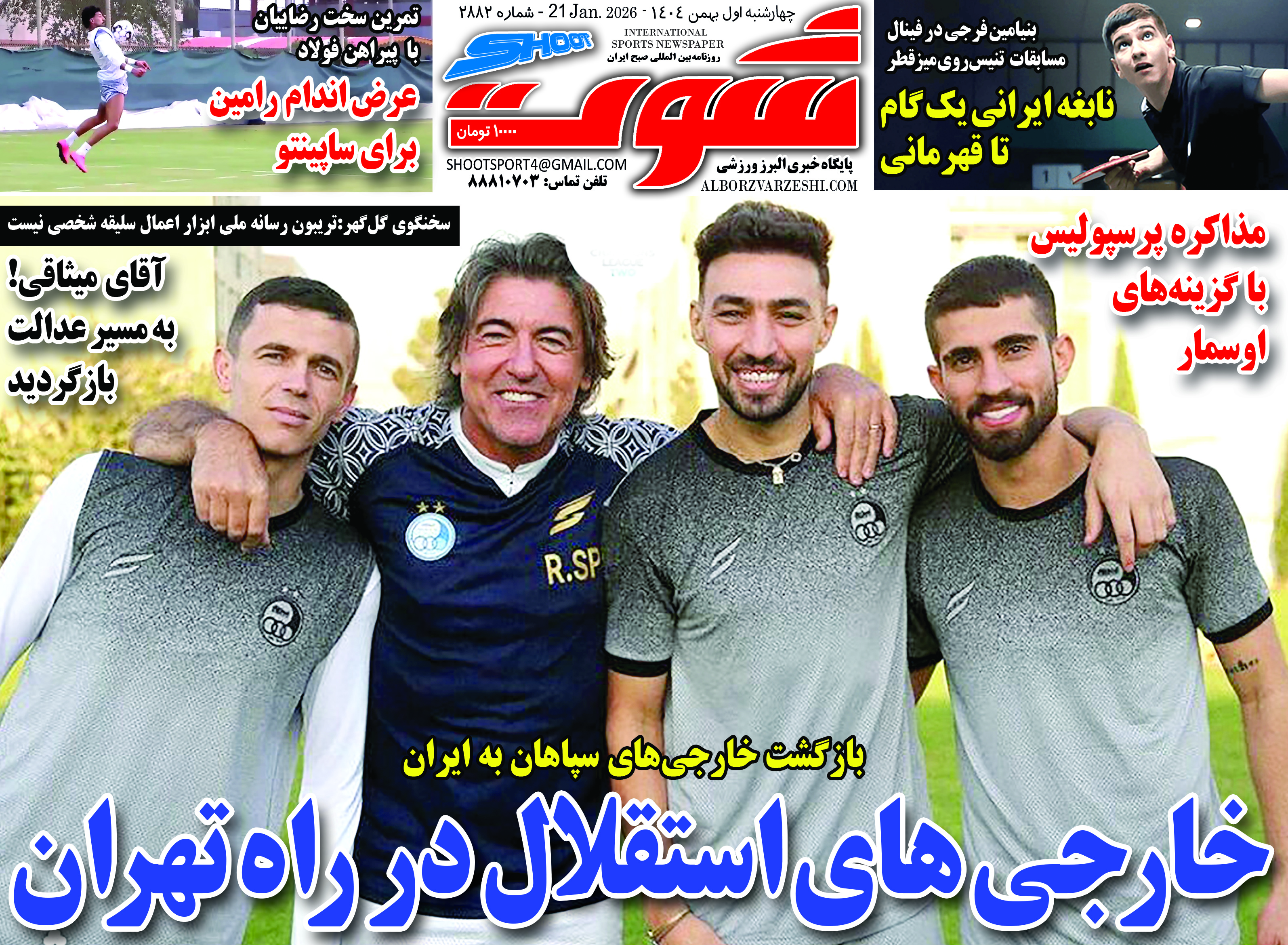 روزنامه ورزشی شوت چهارشنبه اول بهمن 1404